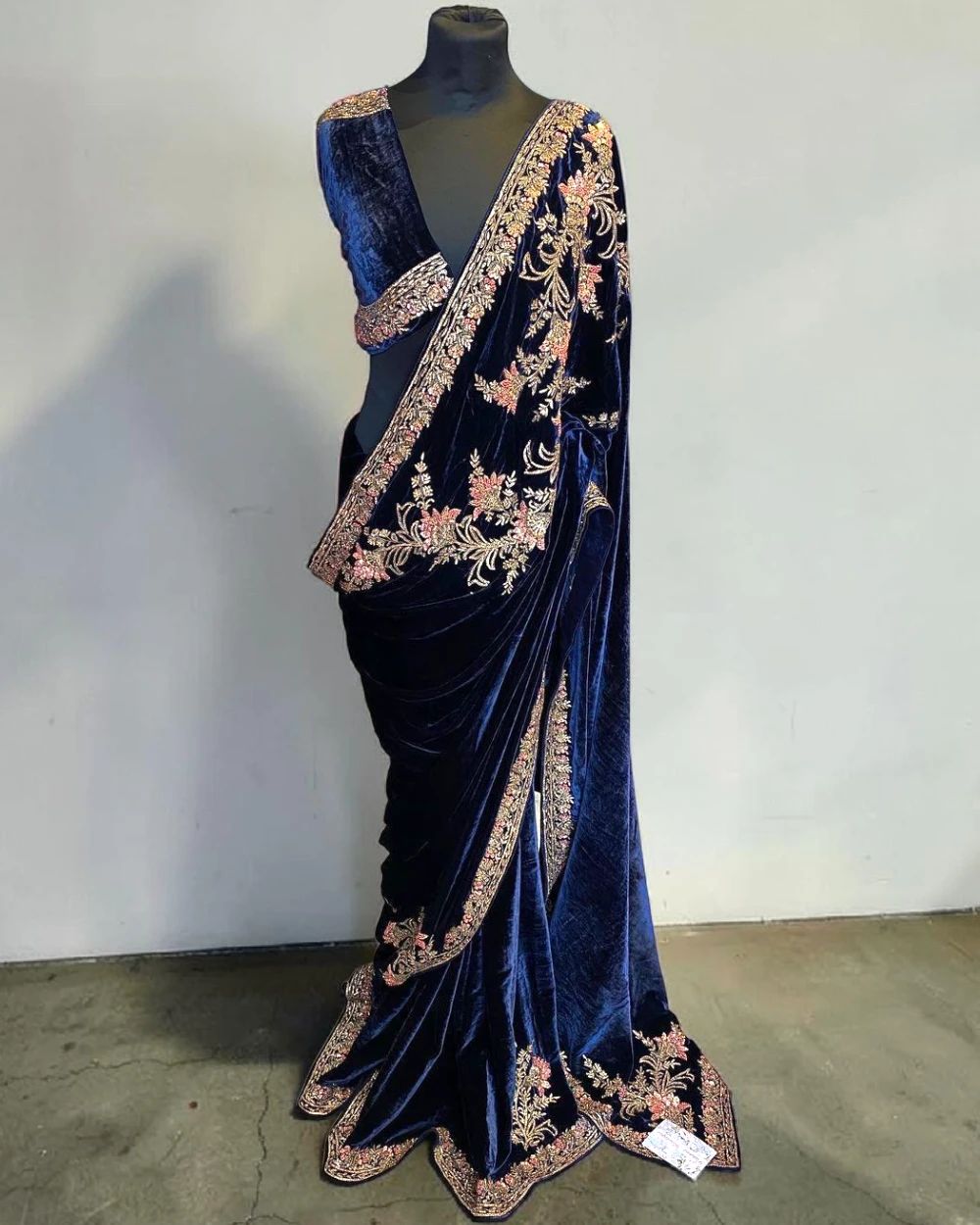Navy Blue Velvet Designer Saree