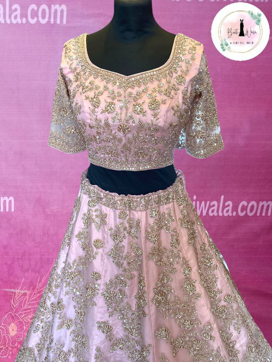 - Product Description – Featuring a magnificent in Raw silk and Net base, an ideal and aesthetically designed for a contemporary Indian bride. This timeless lehenga set has ageless craftsmanship of glass Naqshi, Dabka, Kora, Beads and sequins work. It is gracefully accented with kutdana ,Pot, silk thread, and stone detailing, including a georgette handcrafted dupatta to complete the royal bride’s look.