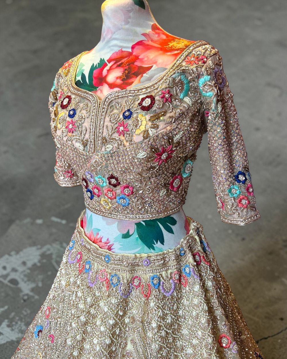 - Production Technique –Â Zardosi and Aari work ( Hand work )