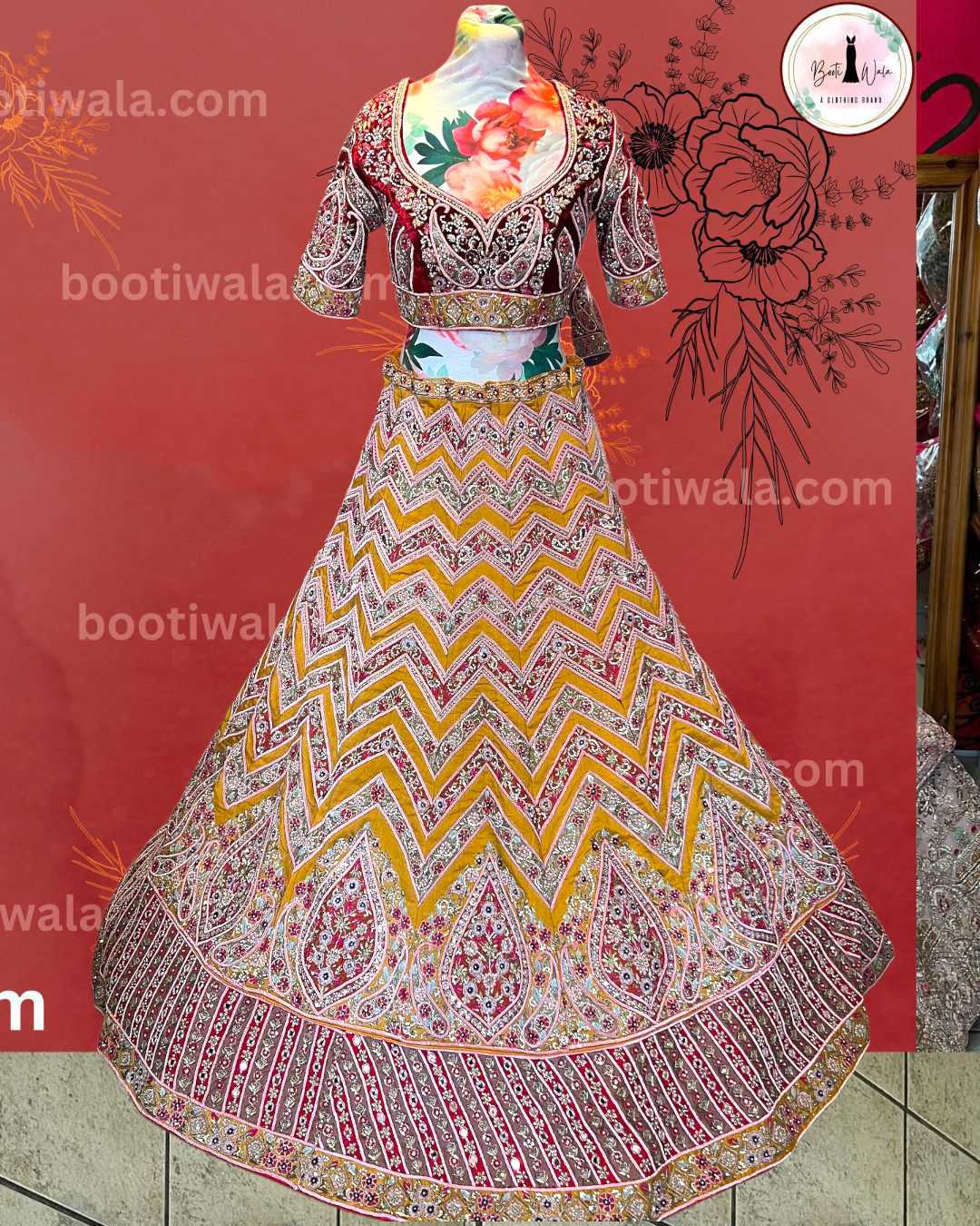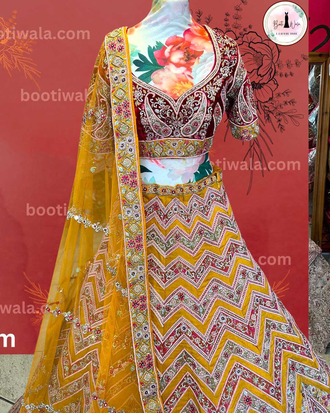- Product Description – Featuring a magnificent in Raw silk and Net base, an ideal and aesthetically designed for a contemporary Indian bride. This timeless lehenga set has ageless craftsmanship of glass Naqshi, Dabka, Kora, Beads and sequins work. It is gracefully accented with kutdana ,Pot, silk thread, and stone detailing, including a georgette handcrafted dupatta to complete the royal bride’s look.