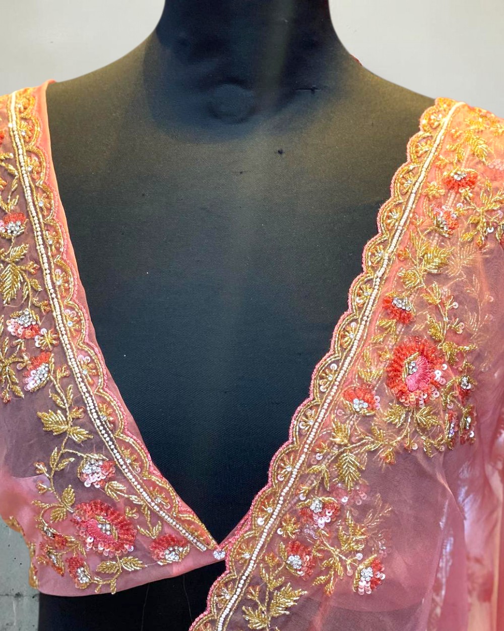 - Product Description – Featuring a magnificent in Organza silk base, an ideal and aesthetically designed for a contemporary Indian bride. This timeless lehenga set has ageless craftsmanship of glass beads and sequins work. It is gracefully accented with kutdana ,Pot, silk thread, and stone detailing, including a georgette handcrafted dupatta to complete the royal bride’s look.