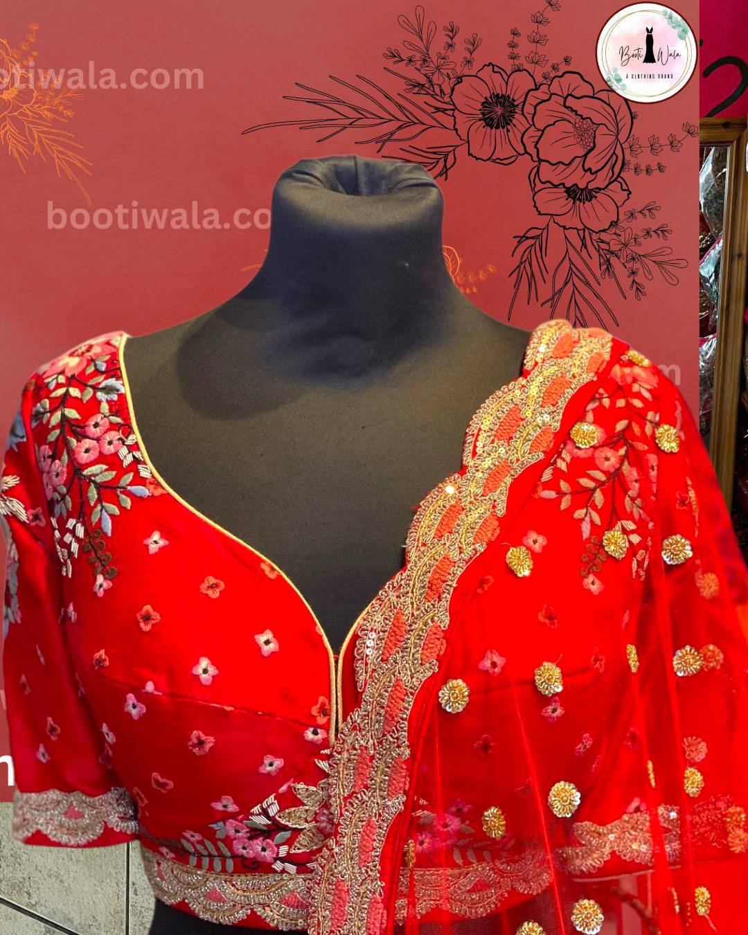 - Product Description – Featuring a magnificent in Raw silk base, an ideal and aesthetically designed for a contemporary Indian bride. This timeless lehenga set has ageless craftsmanship of glass beads and sequins work. It is gracefully accented with kutdana ,Pot, silk thread, and stone detailing, including a georgette handcrafted dupatta to complete the royal bride’s look.