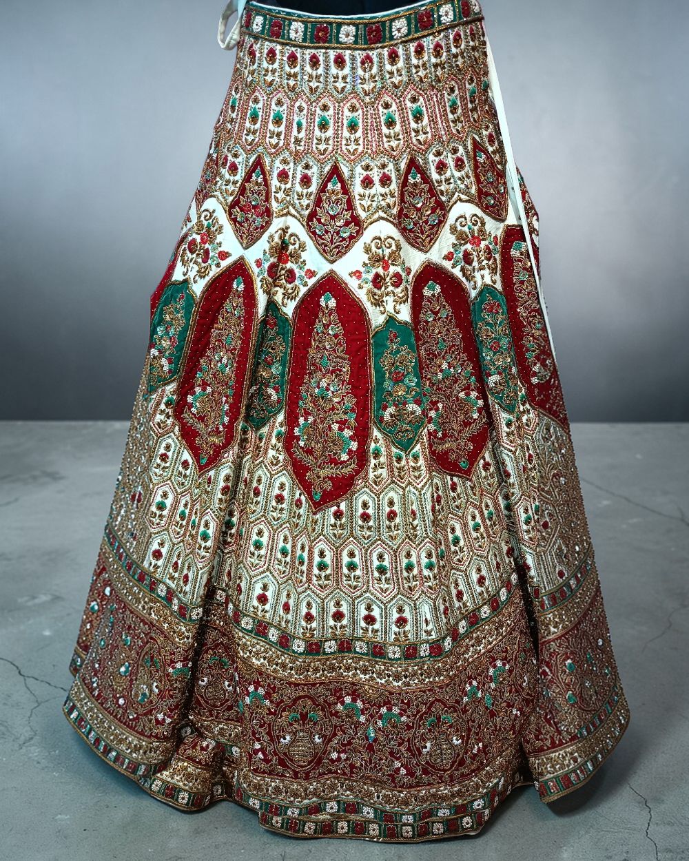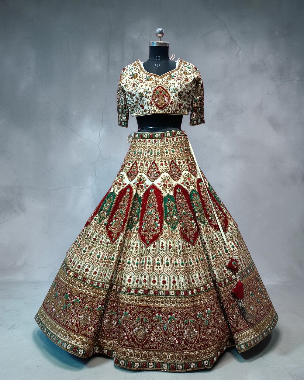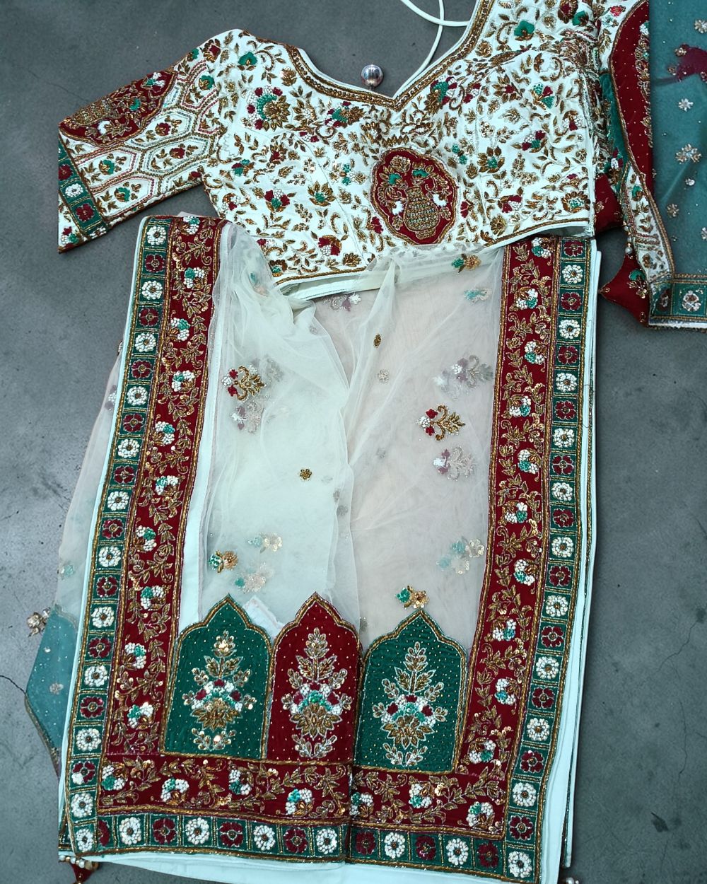 - Product Description – Featuring a magnificent in Raw silk base, an ideal and aesthetically designed for a contemporary Indian bride. This timeless lehenga set has ageless craftsmanship of glass beads and sequins work. It is gracefully accented with kutdana ,Pot, silk thread, and stone detailing, including a georgette handcrafted dupatta to complete the royal bride’s look.