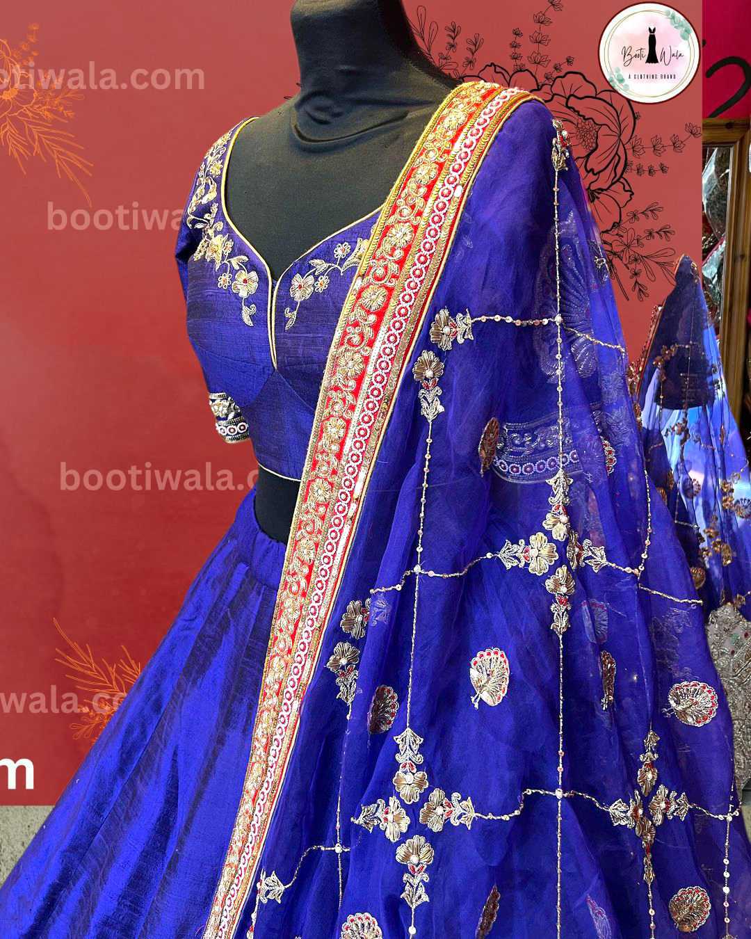- Product Description – Featuring a magnificent in Raw silk and Net base, an ideal and aesthetically designed for a contemporary Indian bride. This timeless lehenga set has ageless craftsmanship of glass Naqshi, Dabka, Kora, Beads and sequins work. It is gracefully accented with kutdana ,Pot, silk thread, and stone detailing, including a georgette handcrafted dupatta to complete the royal bride’s look.