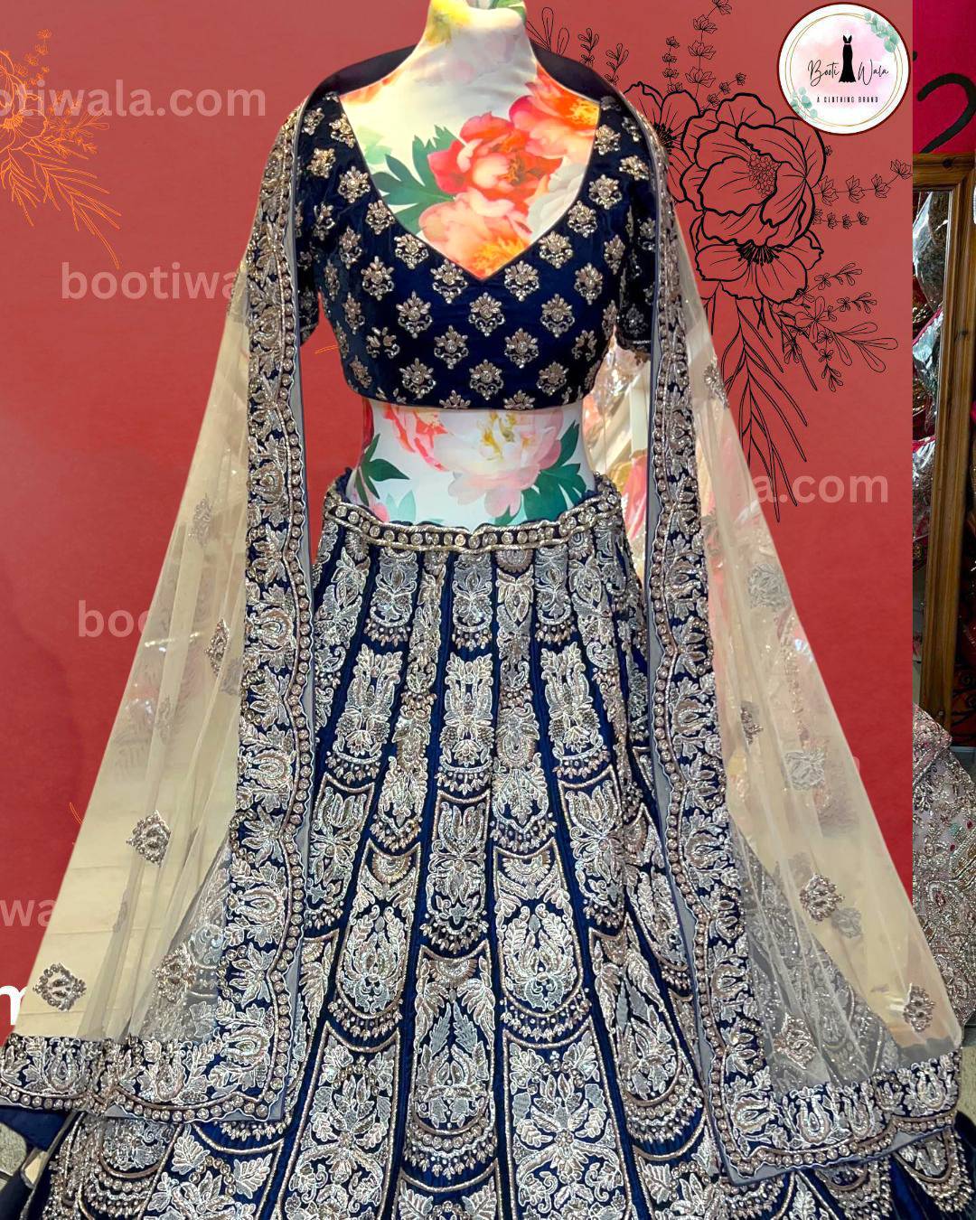 - Product Description – Featuring a magnificent in Raw silk and Net base, an ideal and aesthetically designed for a contemporary Indian bride. This timeless lehenga set has ageless craftsmanship of glass Naqshi, Dabka, Kora, Beads and sequins work. It is gracefully accented with kutdana ,Pot, silk thread, and stone detailing, including a georgette handcrafted dupatta to complete the royal bride’s look.
