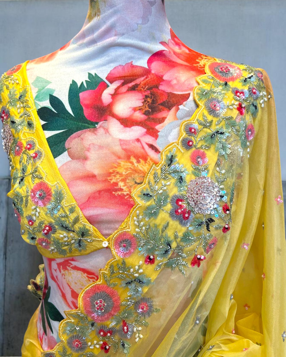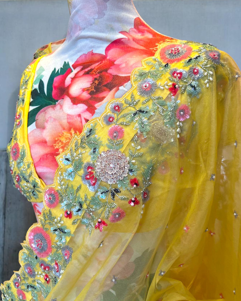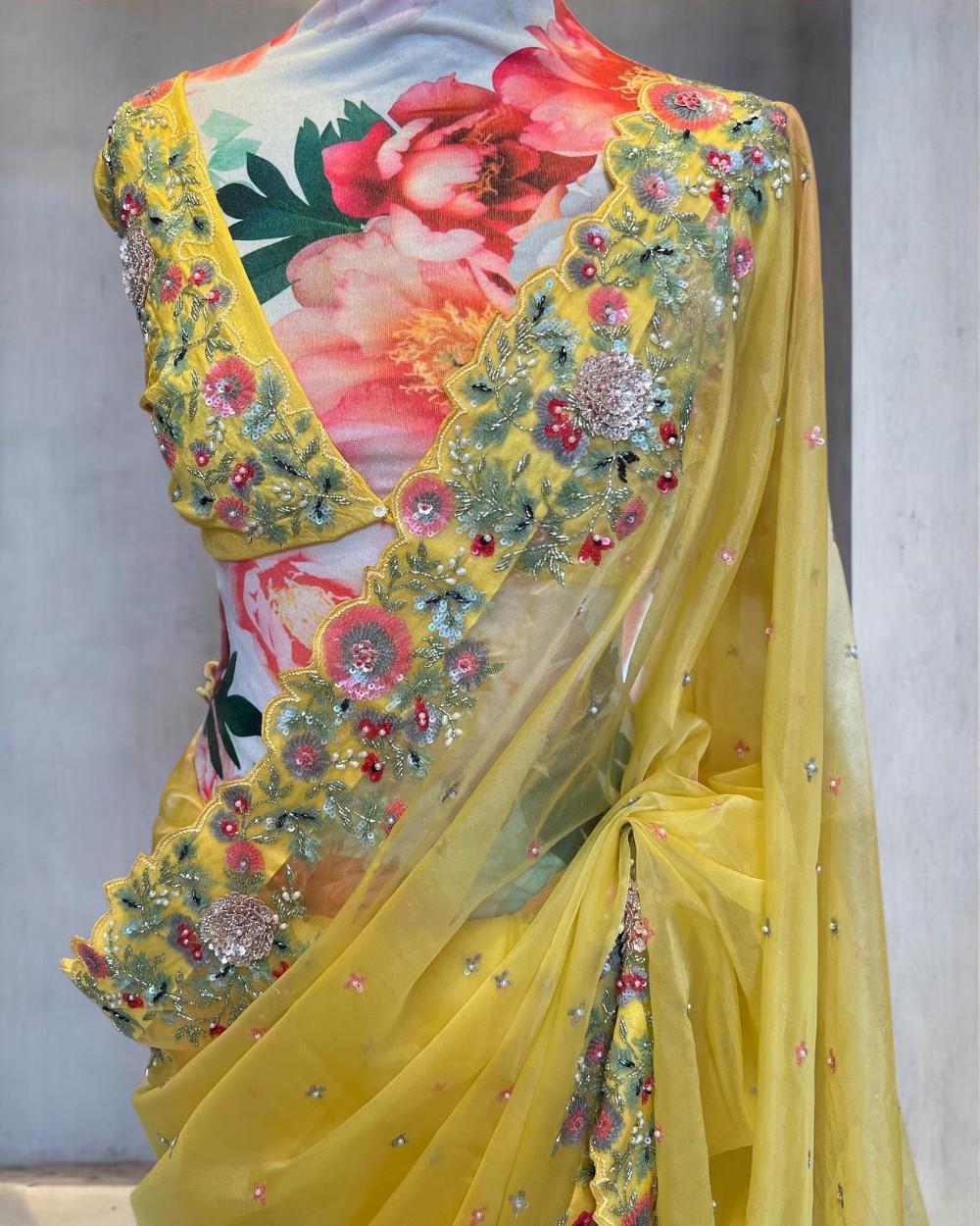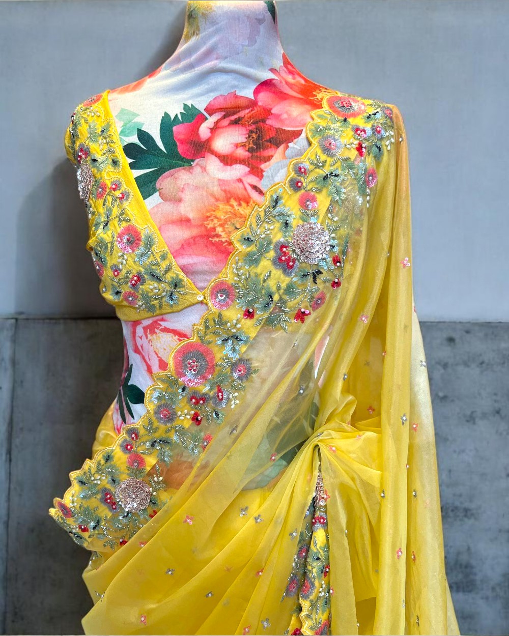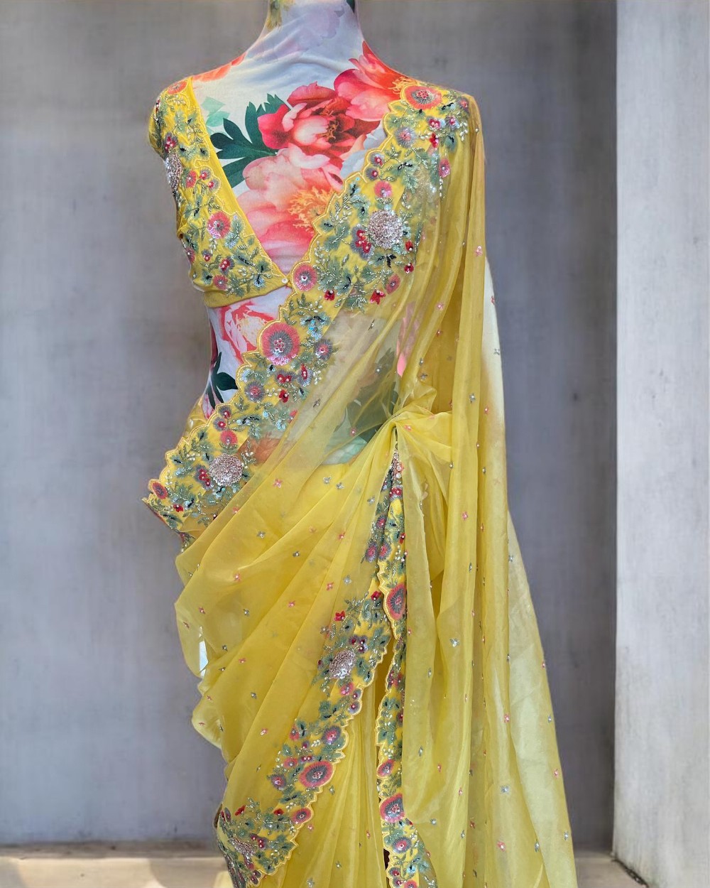 Yellow Organza Silk Designer Saree